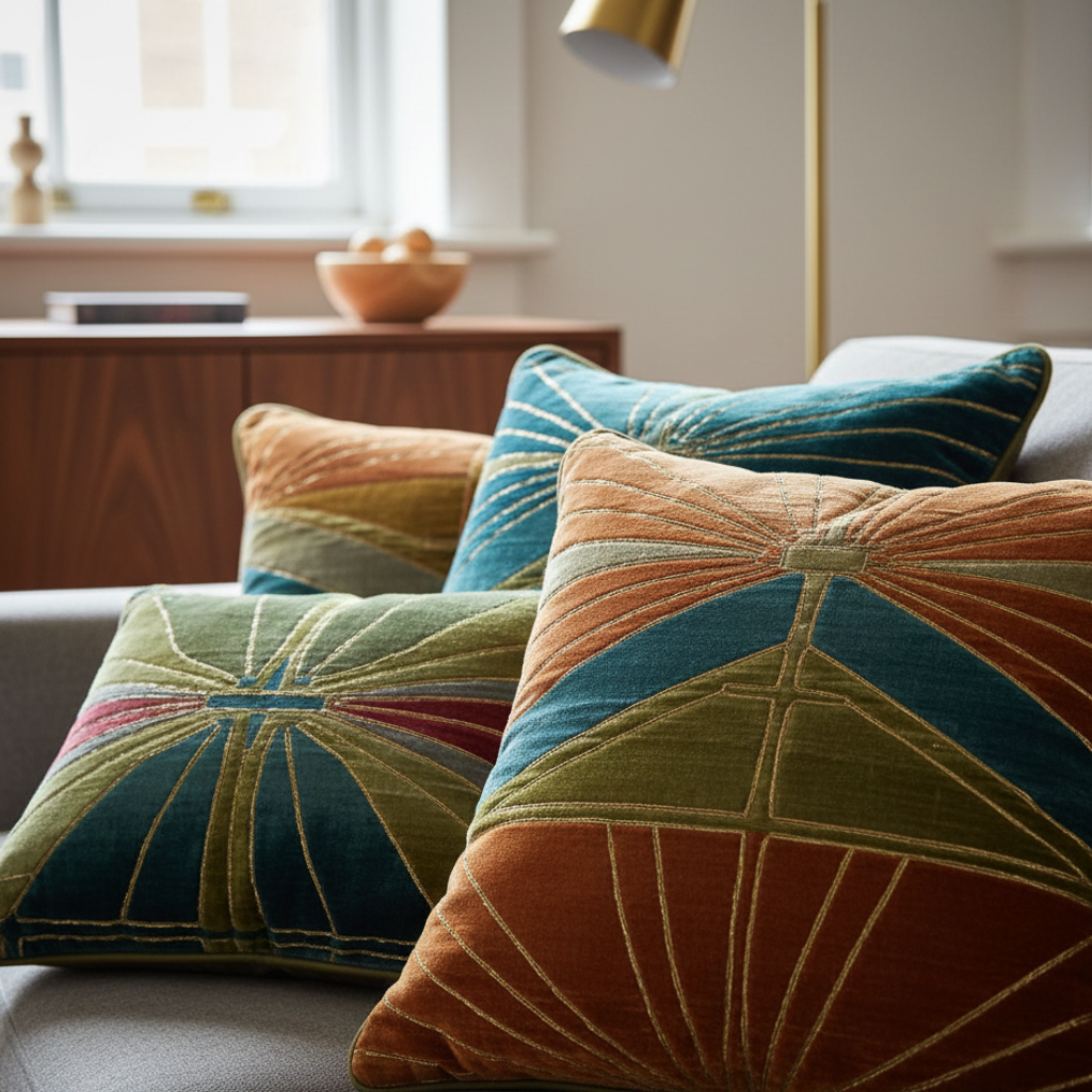 What makes this approach so compelling is the tension between refinement and improvisation. Heavy velvet cushions add depth and drama against pale walls and sunlit floors. Their richness offsets the lightness of the coastal setting, introducing warmth, tactility, and a sense of indulgence without excess. These soft, saturated textiles anchor the space emotionally, offering contrast to the openness of the architecture.