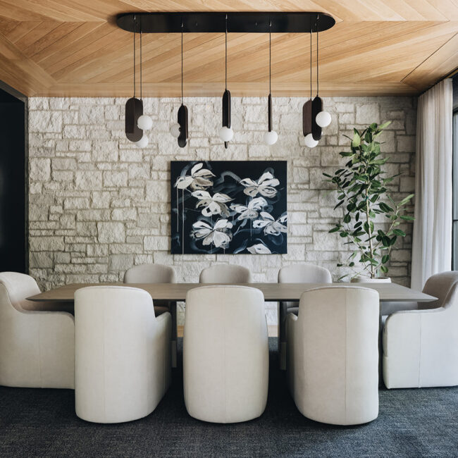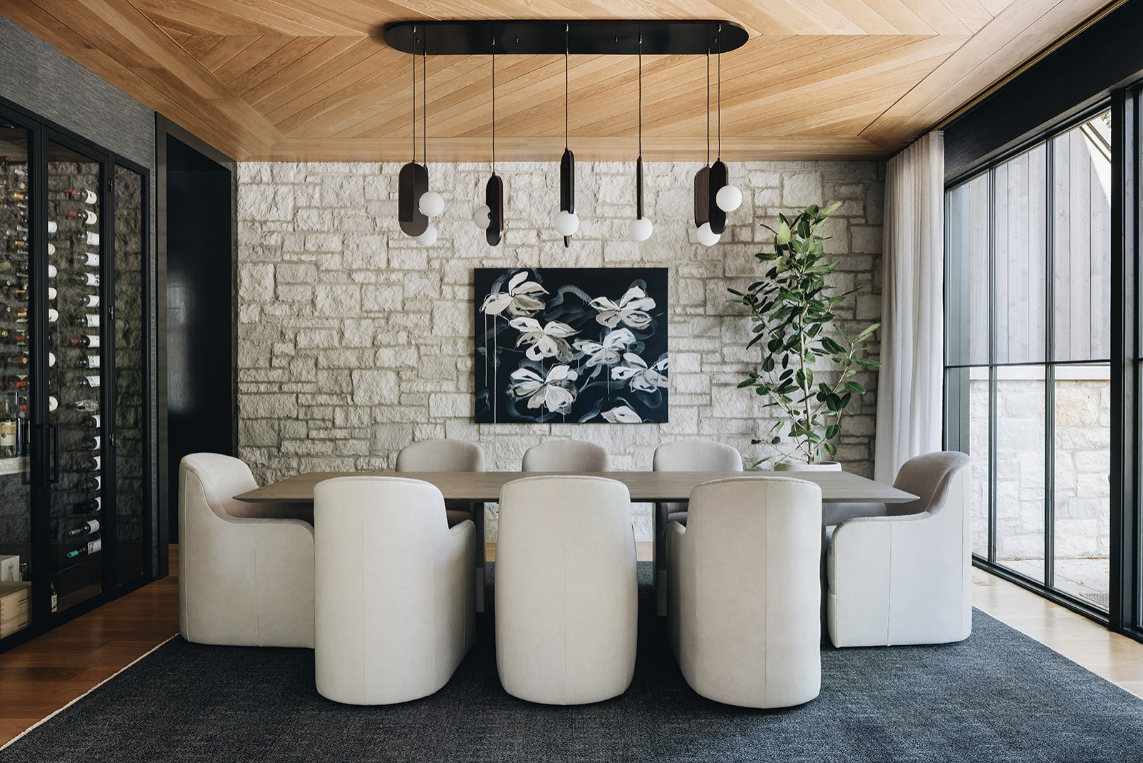 Storm begins each project by understanding the rhythms of daily life. Kitchens become more than cooking spaces—they are social hubs where meals, homework, and conversation converge. The family room, anchored by the striking Oceana quartzite fireplace, offers a tactile, durable backdrop for play, gatherings, and quiet evenings alike. Open layouts and sightlines are designed with both connection and supervision in mind, allowing parents to engage with children while maintaining the home’s compositional clarity.
