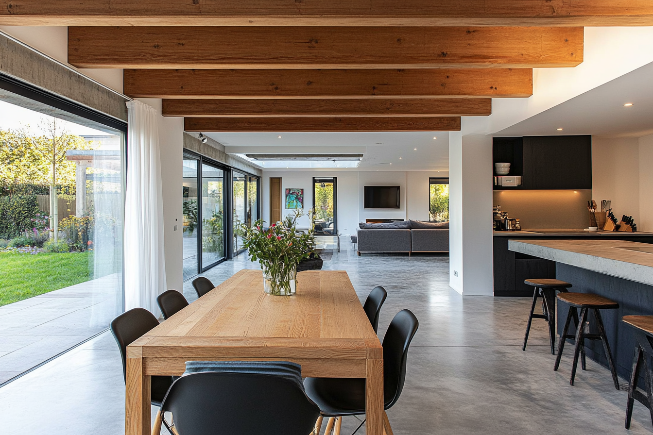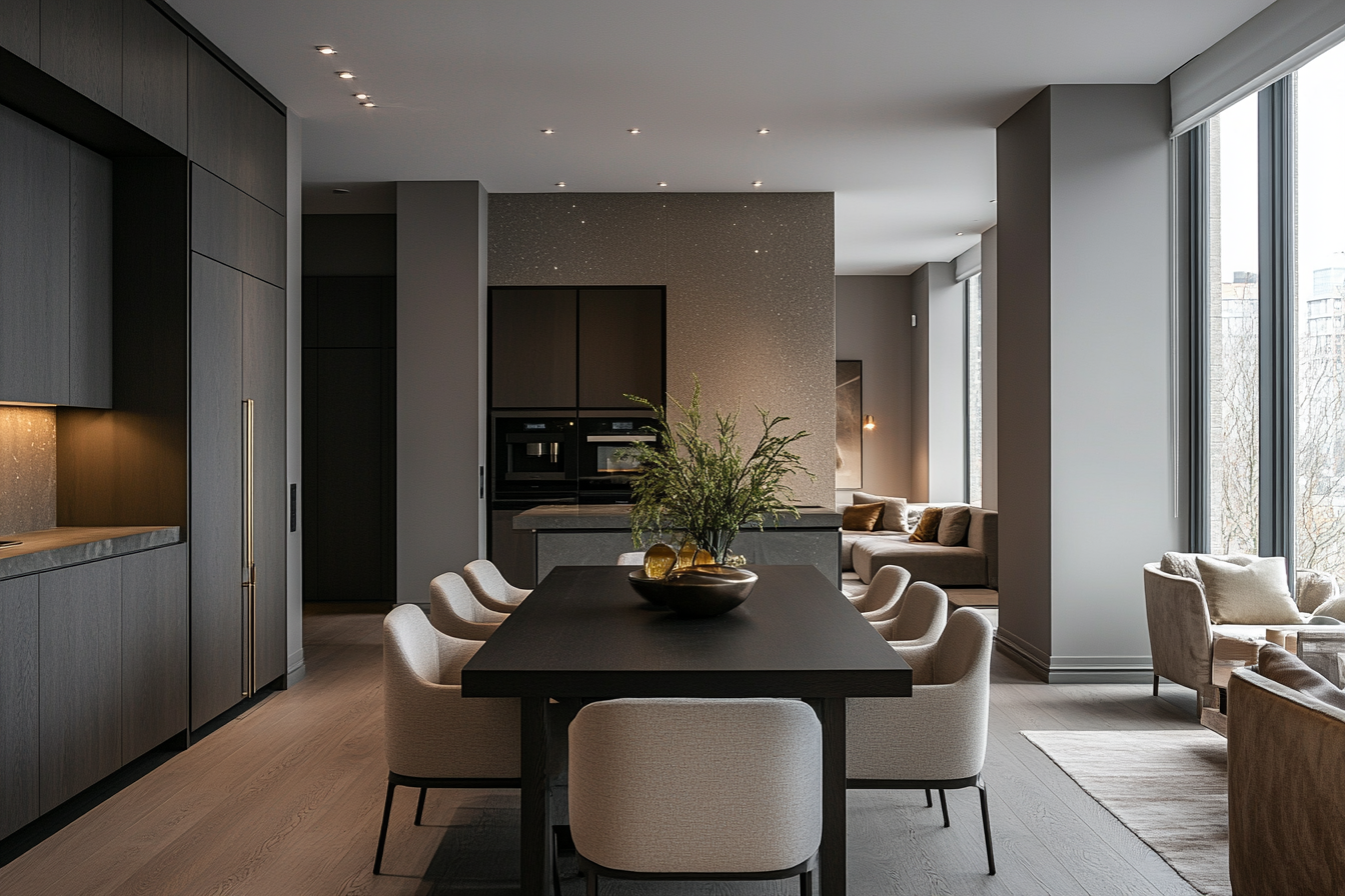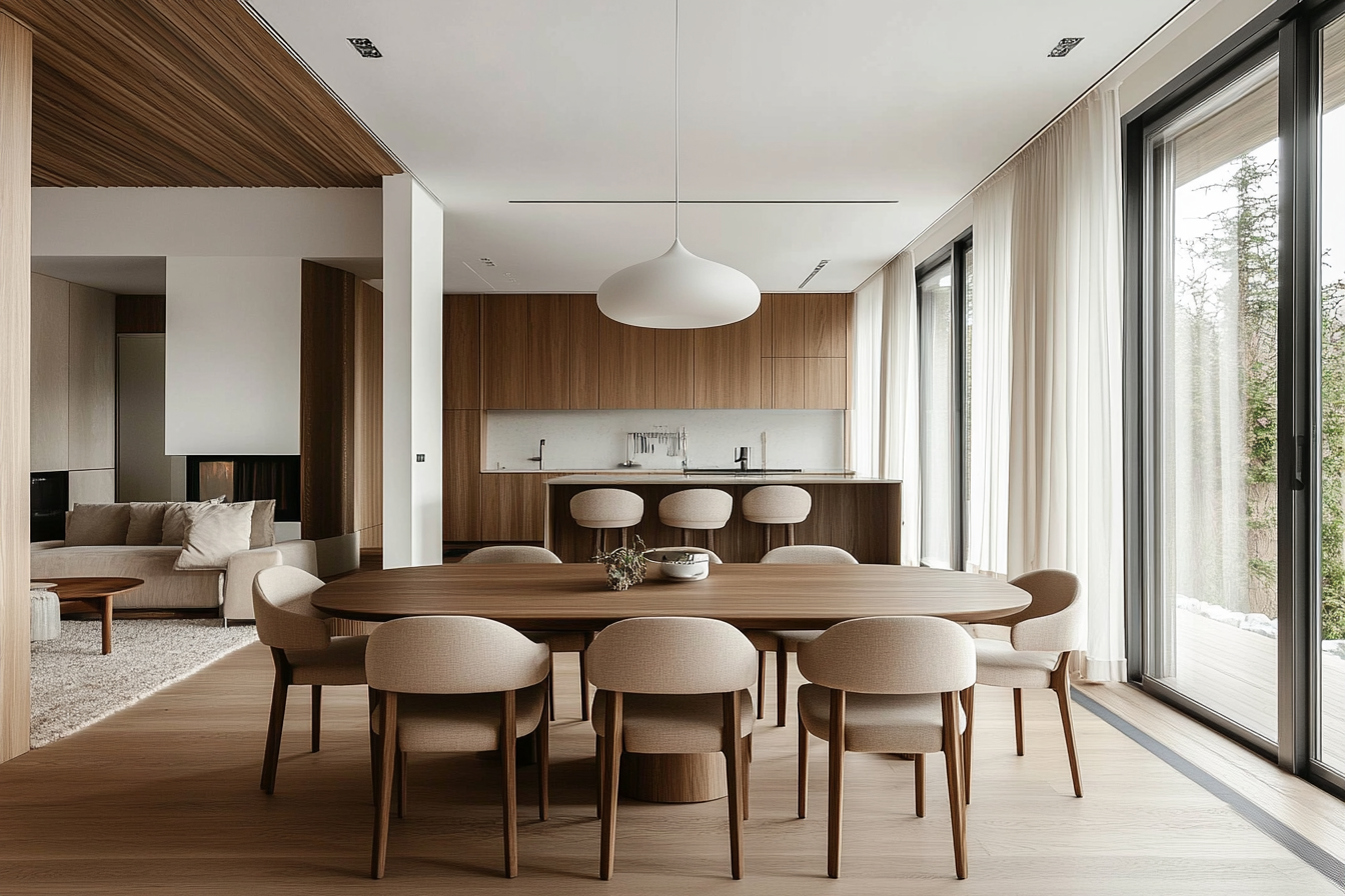 The tone of an open-plan dining room is often serene yet lively — a balance between intimacy and openness. Natural light becomes a key element, flooding through from adjoining rooms and softening the boundaries that once divided household zones. The dining area no longer stands apart as a ceremonial space but merges with daily life. Here, one can cook, converse, or linger over coffee while still being part of the ongoing hum of the home.