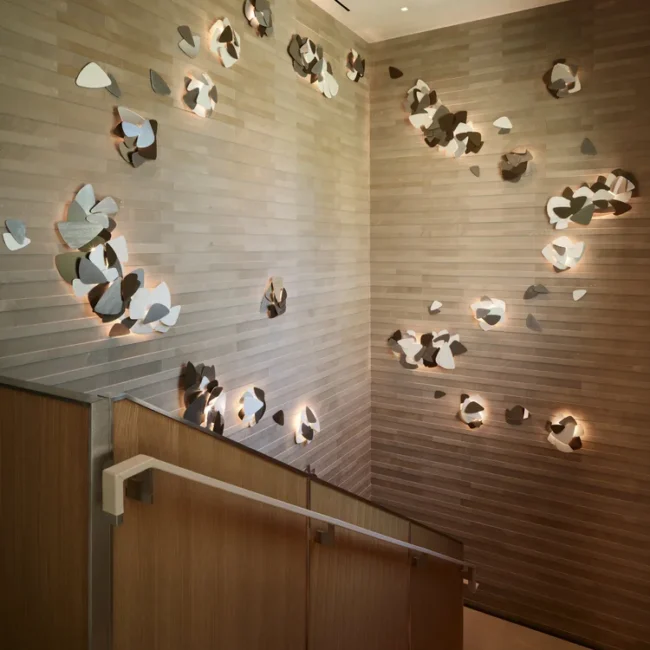 From the moment one enters, the presence of rift sawn white oak establishes a sense of warmth that sits in careful contrast to the limestone that surrounds it. Where stone is cool and grounded, the oak introduces a human quality, something tactile and familiar. It appears in vertical grain across cabinetry, wall treatments, and architectural details, each application reinforcing a quiet continuity that moves from space to space without interruption.