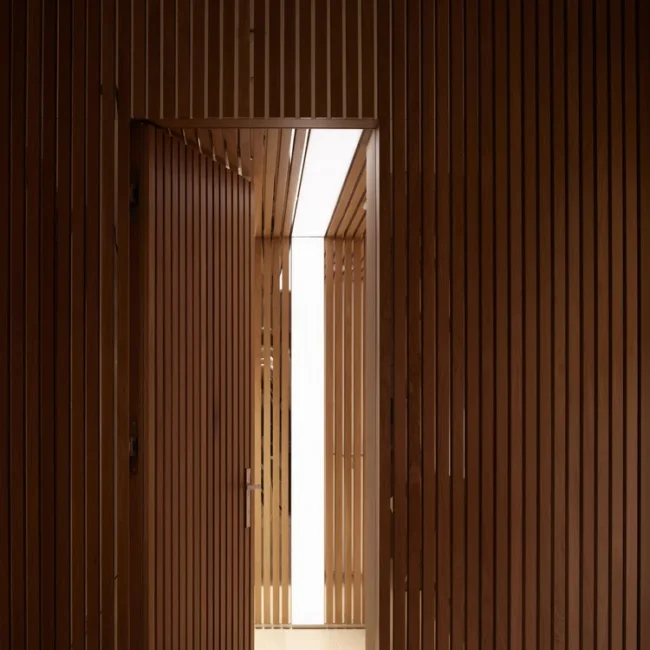 What is most striking is the restraint. The wood is never overworked, never overly expressive. It is allowed to exist in its purest form, its grain doing the work of texture, its tone carrying warmth without excess. This restraint gives the interiors a sense of calm, allowing the architecture to feel composed rather than decorated.